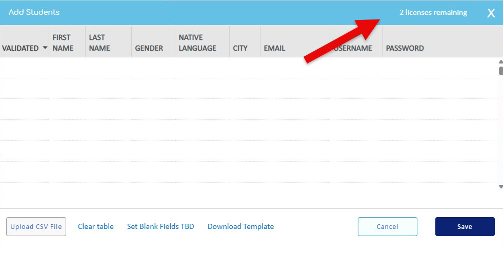 ✅ This count helps you confirm whether you have sufficient licenses to enroll additional students.
